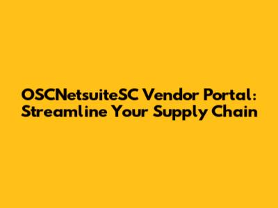 OSCNetsuiteSC Vendor Portal: Streamline Your Supply Chain