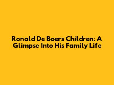 Ronald De Boer's Children: A Glimpse Into His Family Life