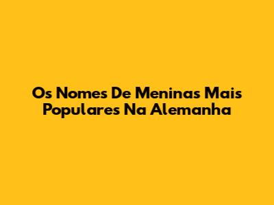 Os Nomes De Meninas Mais Populares Na Alemanha