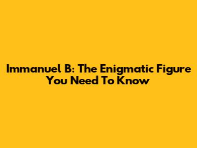 Immanuel B: The Enigmatic Figure You Need To Know