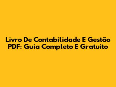 Livro De Contabilidade E Gestão PDF: Guia Completo E Gratuito